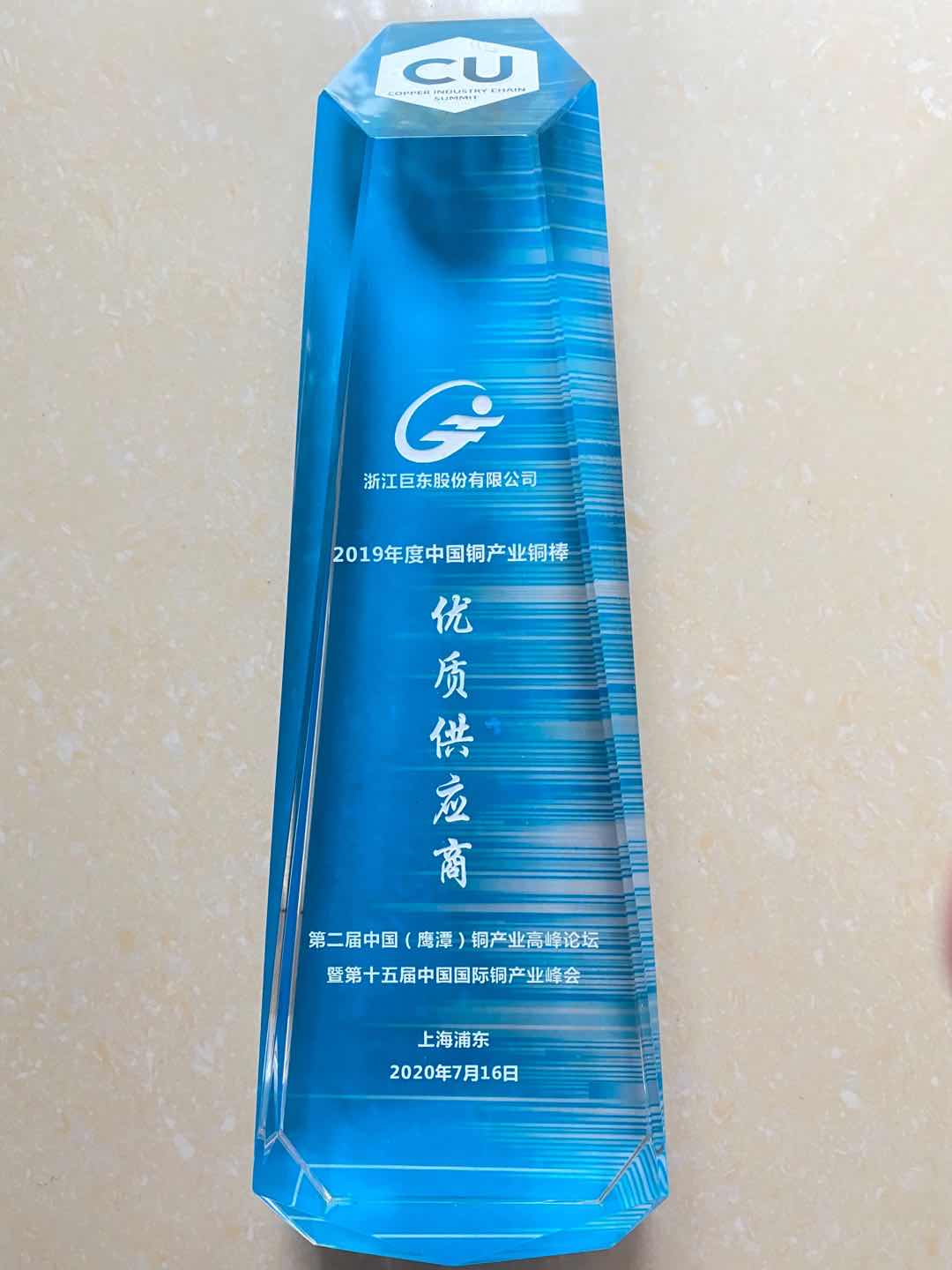 2020年7月榮獲2019年度中國銅產(chǎn)業(yè)銅棒優(yōu)質(zhì)供應(yīng)商