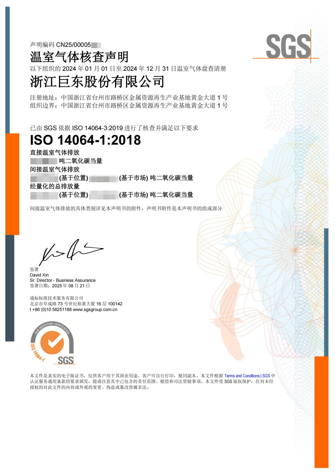 2024年10月獲產(chǎn)品碳足跡認(rèn)證證書